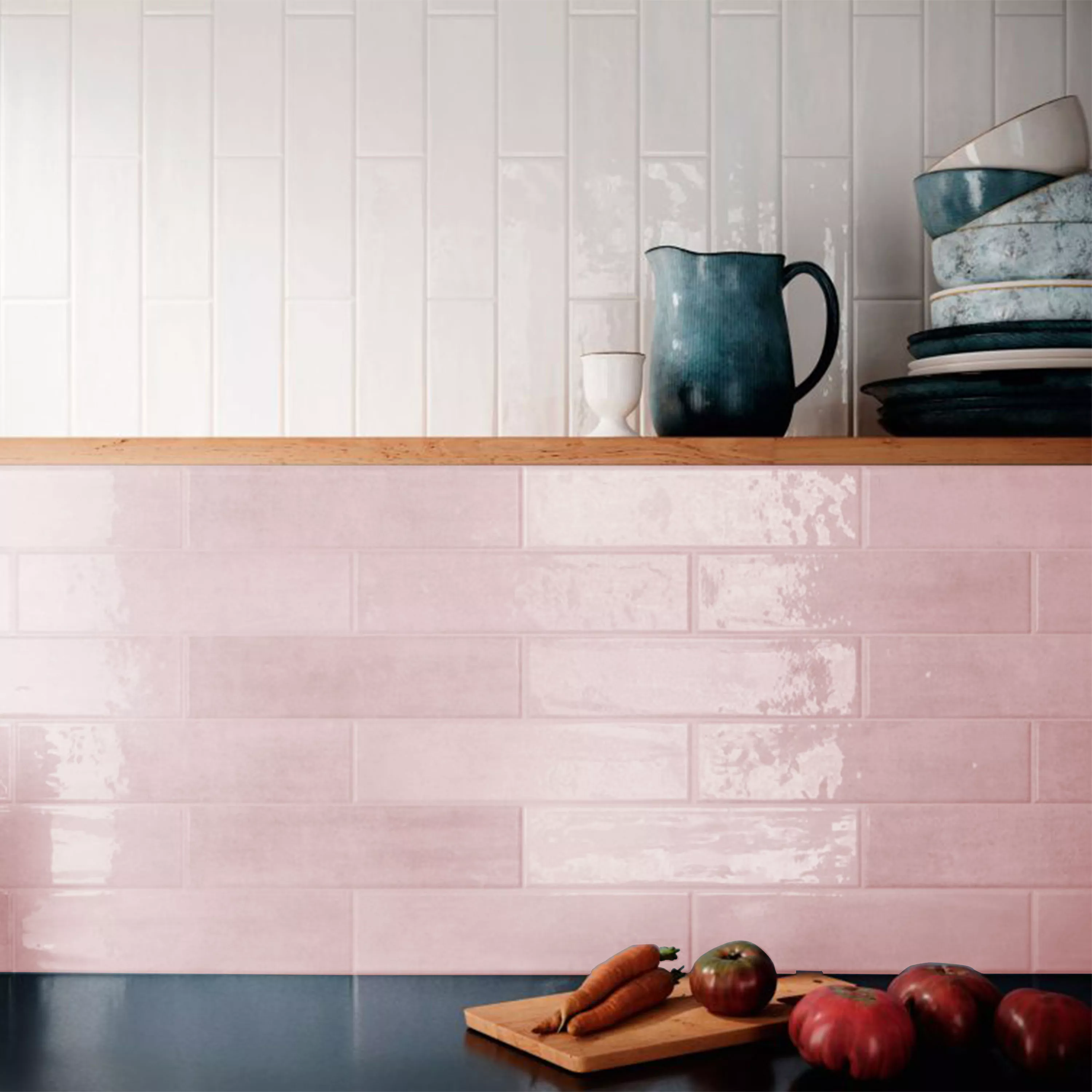 A fényes rózsaszín és hullámos szerkezetű Tropea fali csempék bájos vintage hangulatot kölcsönöznek falainak. Ezek a mázas téglalap alakú 7,5x30 cm méretű és 8,4 mm vastag csempék egyedi esztétikát kölcsönöznek otthonának. A hullámos, fényes felület finom dinamizmust és egy kis eleganciát kölcsönöz szobáinak.
