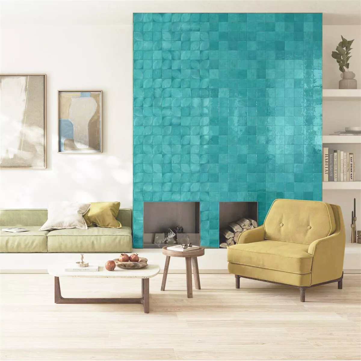 Maryland Türkis Glänzend 3D Strukturiert 10x10 cm