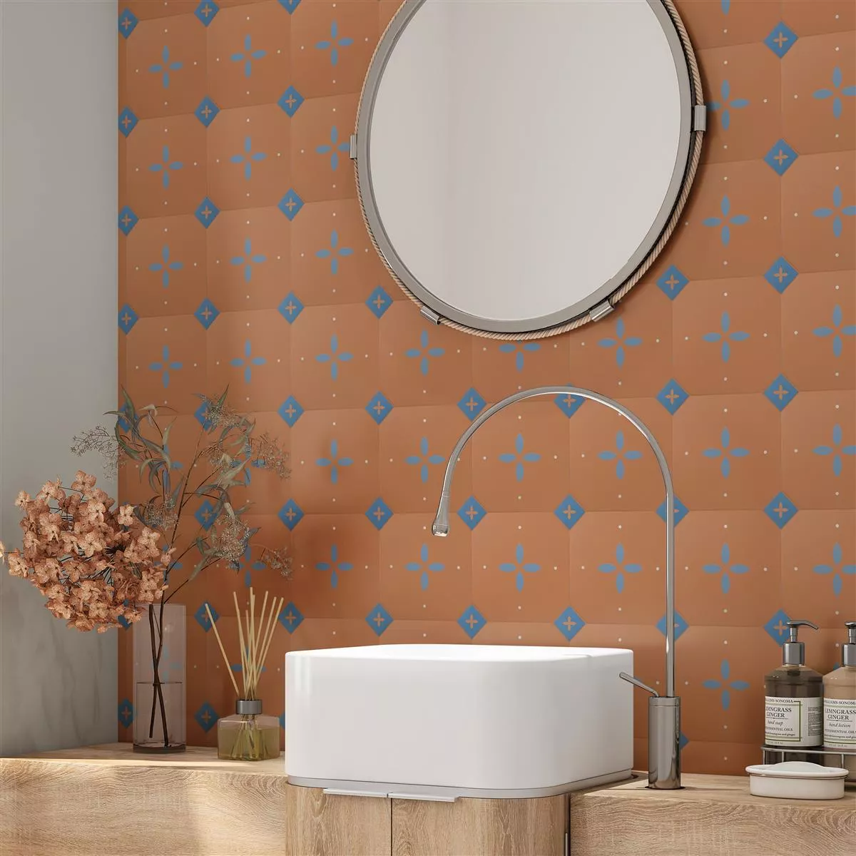 A Genexia Decor Ocher Octagon porcelán kőcserép egy kis vintage bájt kölcsönöz otthonának okker színben. Egyedülálló nyolcszög formátumukkal és retro virágos megjelenésükkel tökéletesek fal- és padlóburkolatokhoz különféle helyiségekben.
