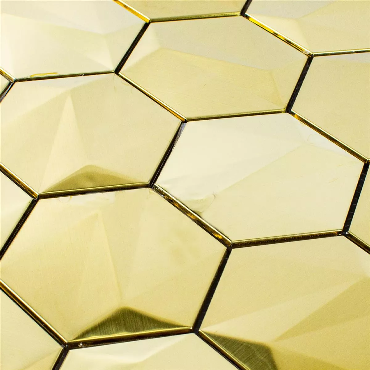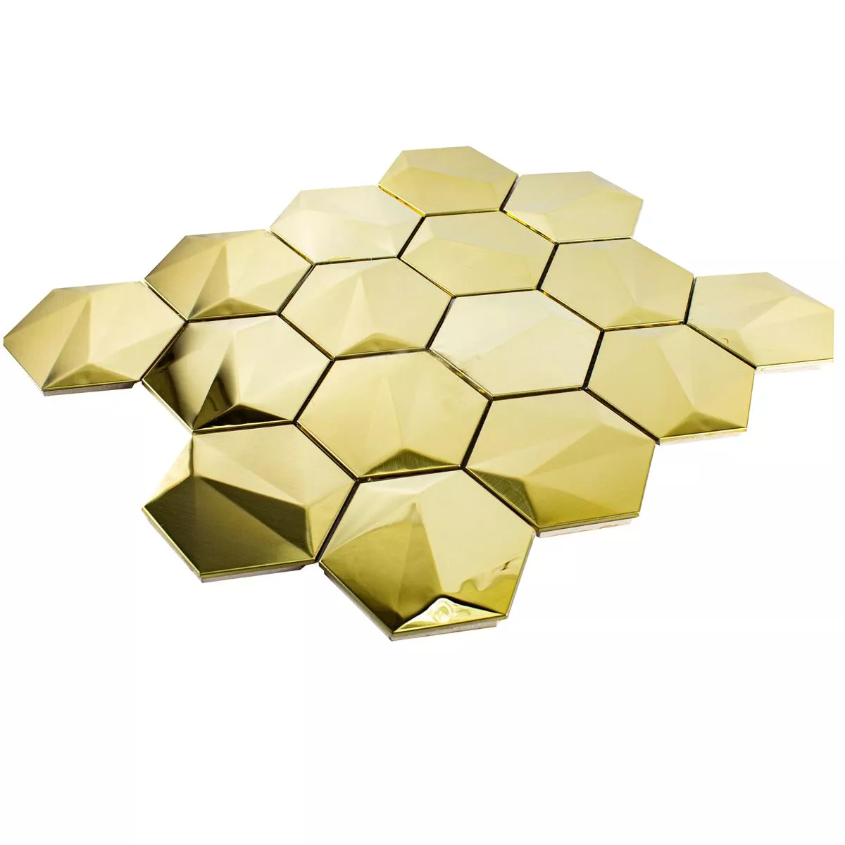 A Durango Hexagon 3D Gold rozsdamentes acél mozaiklapok igazi szemet gyönyörködtetőek, és minden szobát fényűző és modern megjelenést kölcsönöznek. Arany színükkel meleg és elegáns hangulatot hoznak a beltérbe.