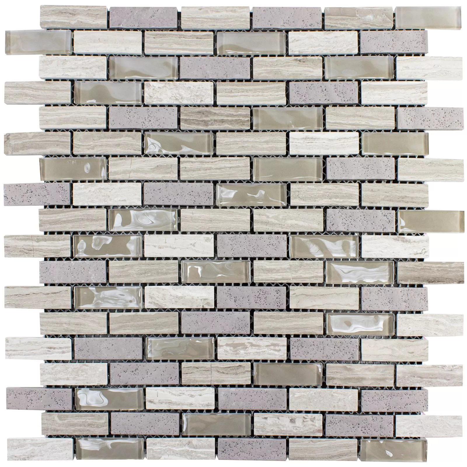 Diese rechteckigen Mosaikfliesen mit einer Größe von 29,8x30,4cm und einer Dicke von 5mm eignen sich ideal als Wandfliesen für Badezimmer, Küchen und Wohnräume. Das selbstklebende Design erleichtert die Installation, aber es ist zu beachten, dass sie für den Einsatz in Nassbereichen wie Duschen oder Badewannen nicht geeignet sind. Die Fliesen bestehen aus einer Kombination von Naturstein und Glas und sind in der Farbe Grau erhältlich. Die Steingröße beträgt 15x48mm und die Oberfläche kann wahlweise matt oder glänzend sein.